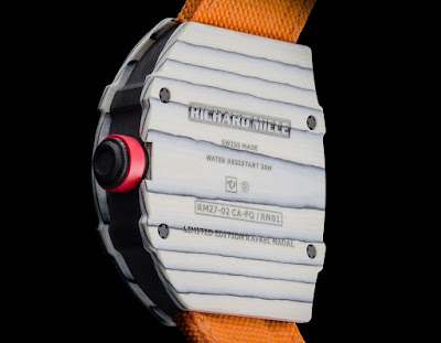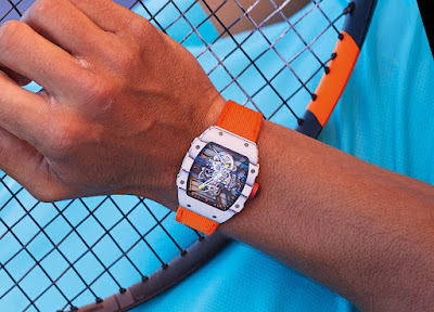 Auf Rafael Nadals Handgelenk während der laufenden French Open bei Roland Garros ist die Richard Mille RM 27-02, eine ultraleichte Armbanduhr, die das neueste in einer Reihe von Uhren für den Tennis-Champion, nach dem RM 27-01 gemacht ist . Im typischen Richard-Mille-Stil hat der RM 27-02 eine Skelettbewegung, aber zum ersten Mal auf einer ungewöhnlichen einteiligen Basisplatte und Kofferband gebaut, während der Fall aus einem exotischen Carbon-Quarz-Verbund besteht, der NTPT-Carbon kombiniert TPT Quarz.